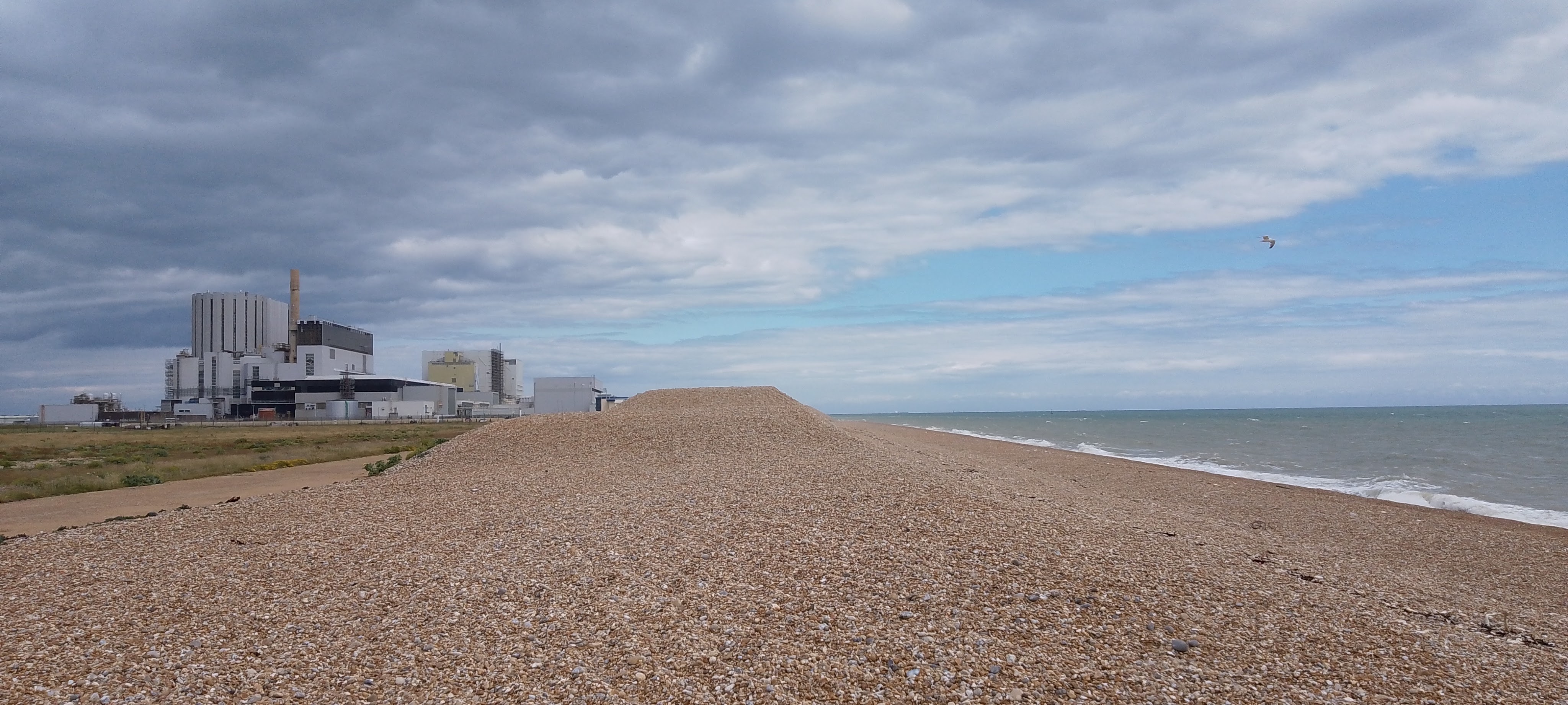 By this point I was really flagging which probably made this section seem worse than it actually was. I needed to sit down and I needed some lunch but, walking along a concrete track, there was nowhere suitable to sit. I concentrated on putting one foot in front of the other. I could see Dungeness Power Station ahead to my left. Surely the beach couldn’t be too far away?