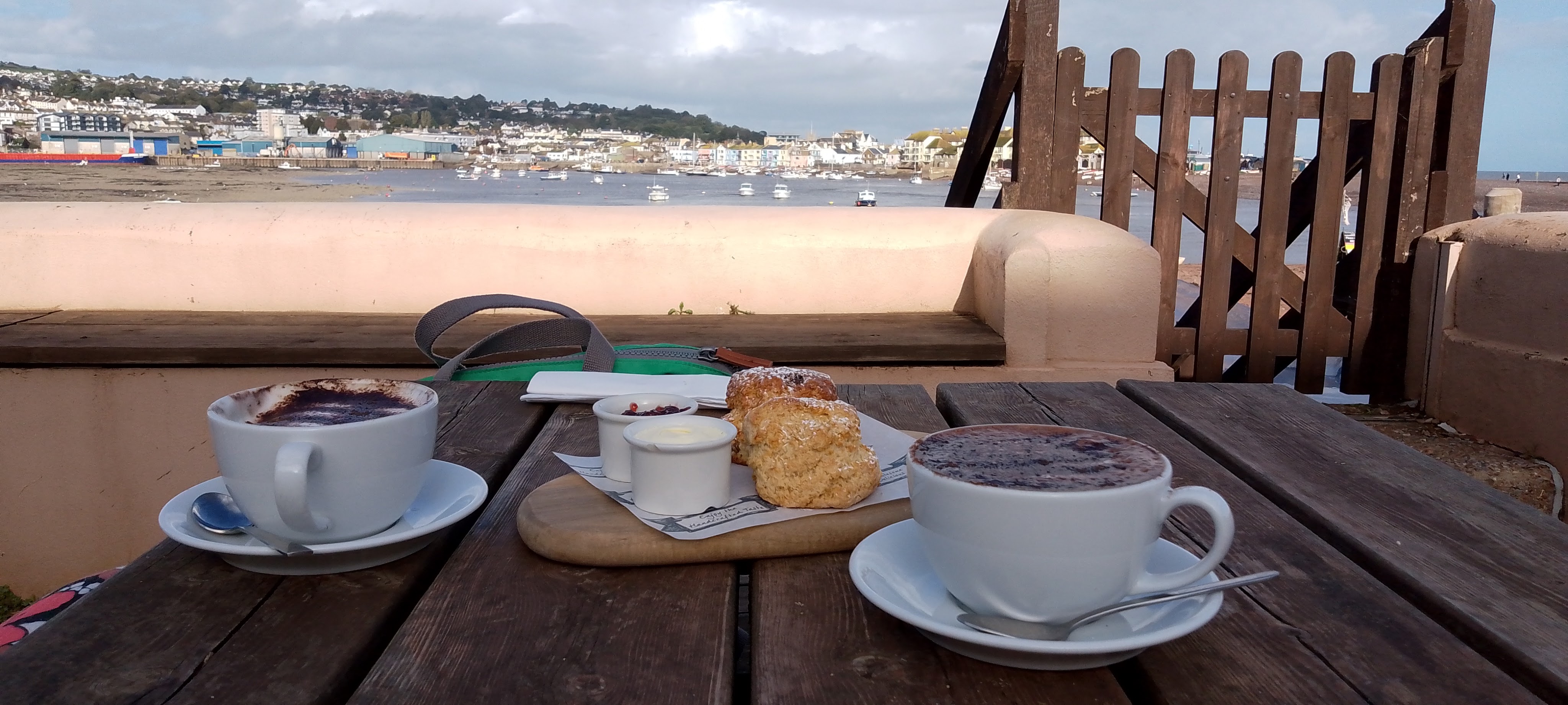 As if all this wasn’t enough, I learnt that the next plan for the day was to walk along part of the South West Coastal Path to Dawlish, but feeling in need of more sustenance before tackling this, and after coming across a cafe (The Strand Cafe) with a lovely garden area right on the riverside, we decided that this would make a perfect drink stop before heading back to Teignmouth on the ferry. I say drink stop, but you can’t come to Devon without having a cream tea, and we did have a walk ahead of us, and I was flagging after what already seemed like a very long day, so we were duly tempted and gave into that temptation! Sitting there, I really felt as if I was living my very best life.
