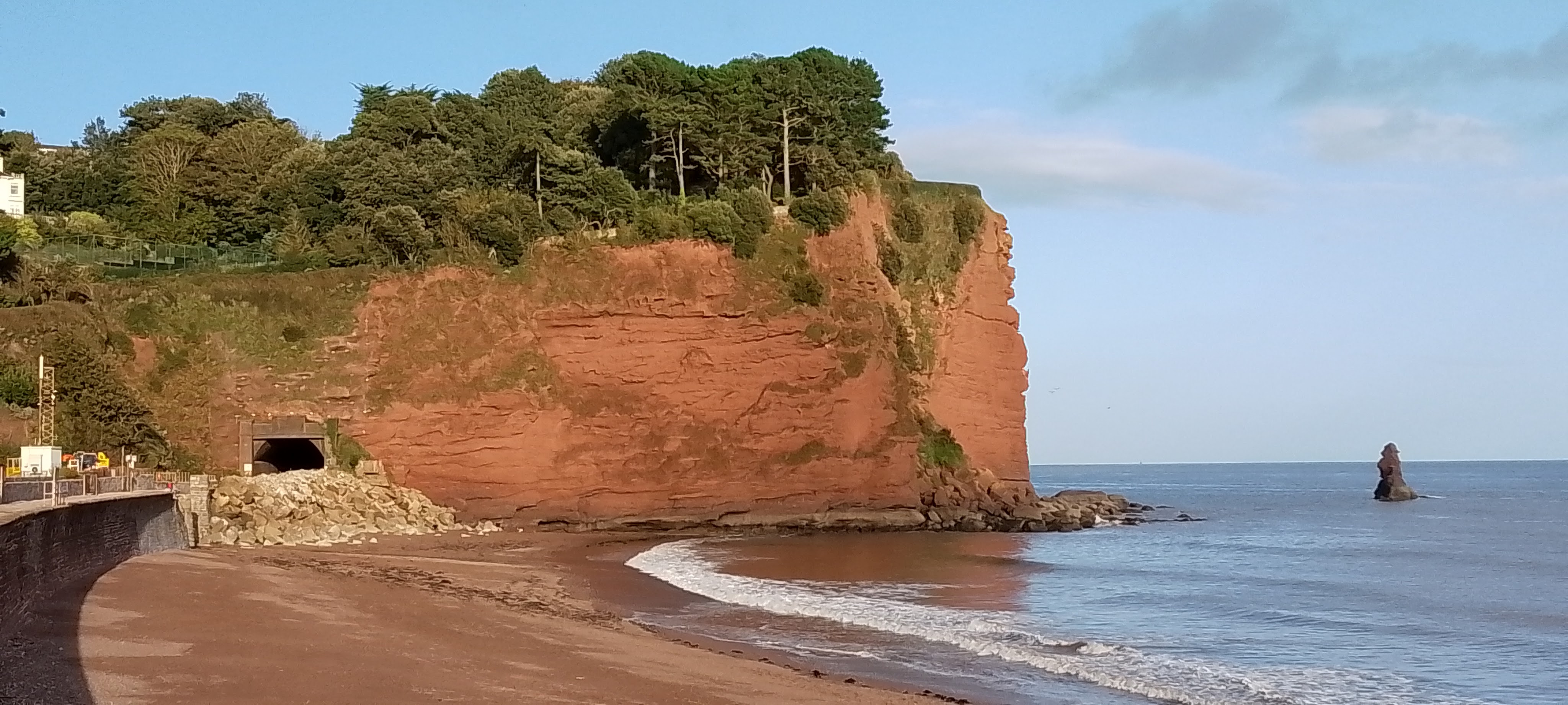 As we approached the red cliffs at the end of the promenade, my daughter pointed out the rock stacks ahead and told me the story of how they were a local parson and his clerk who were driven over the cliff by the devil and turned into stone. (You can read about the full legend here – https://www.visitsouthdevon.co.uk/blog/read/2022/09/devon-folkore-b583)