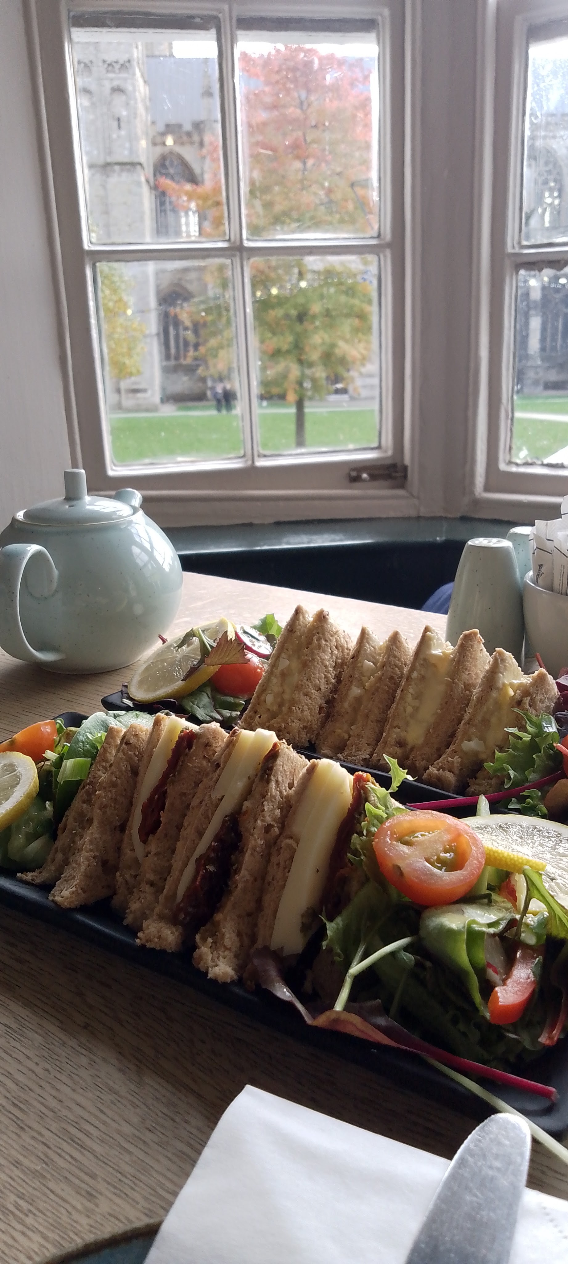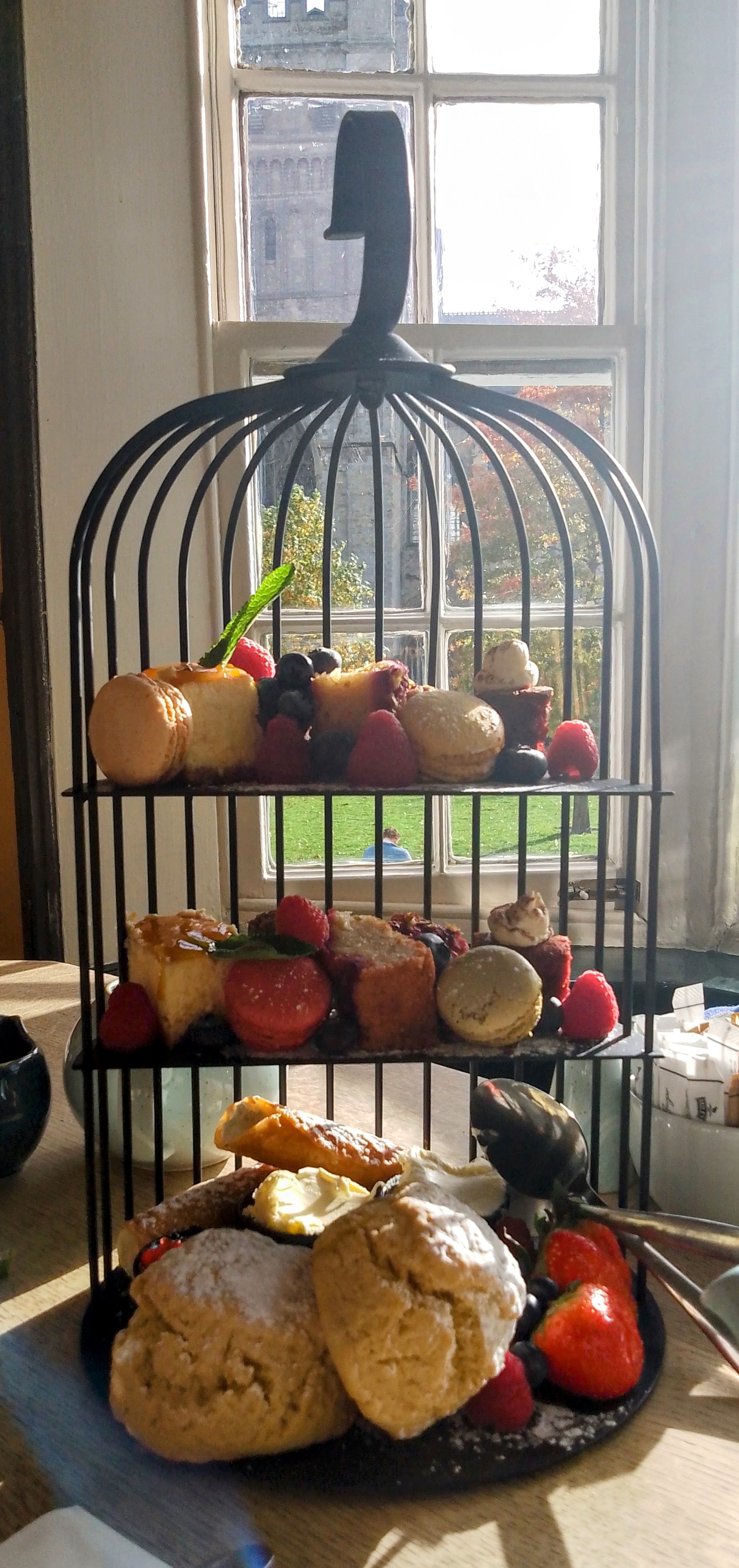 The grand finale to our weekend was afternoon tea, which was another wonderful surprise, and which my daughter had booked at a cafe called Eat on the Green. It is situated right on the cathedral green, and it was even better to discover that we had a window table on the first floor reserved for us, which afforded a wonderful view as we ate.