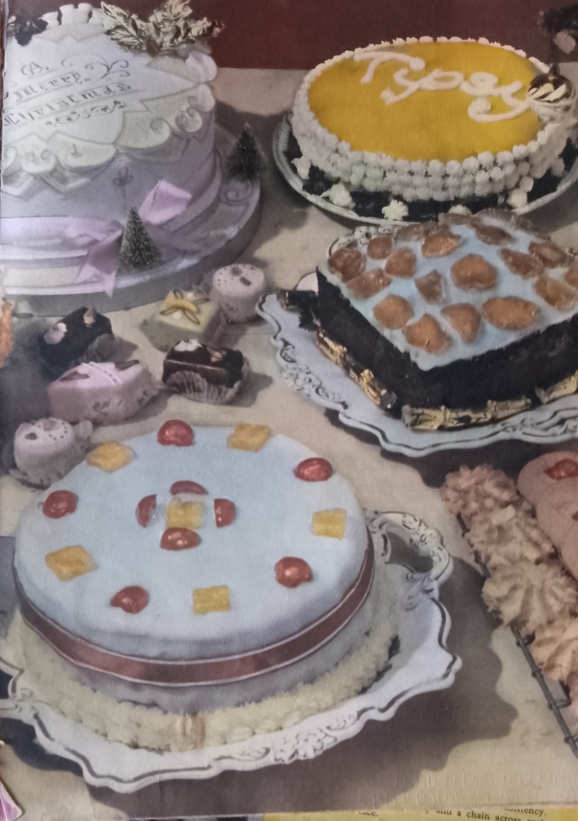 I borrowed it years ago and then never gave it back as I love browsing the retro recipes and photos. The rather fancily decorated Christmas cake is in the top right of the picture below, although I always leave ours plain because some of us are not that keen on icing and others don’t like marzipan – but we are all in agreement that we like the cake itself!