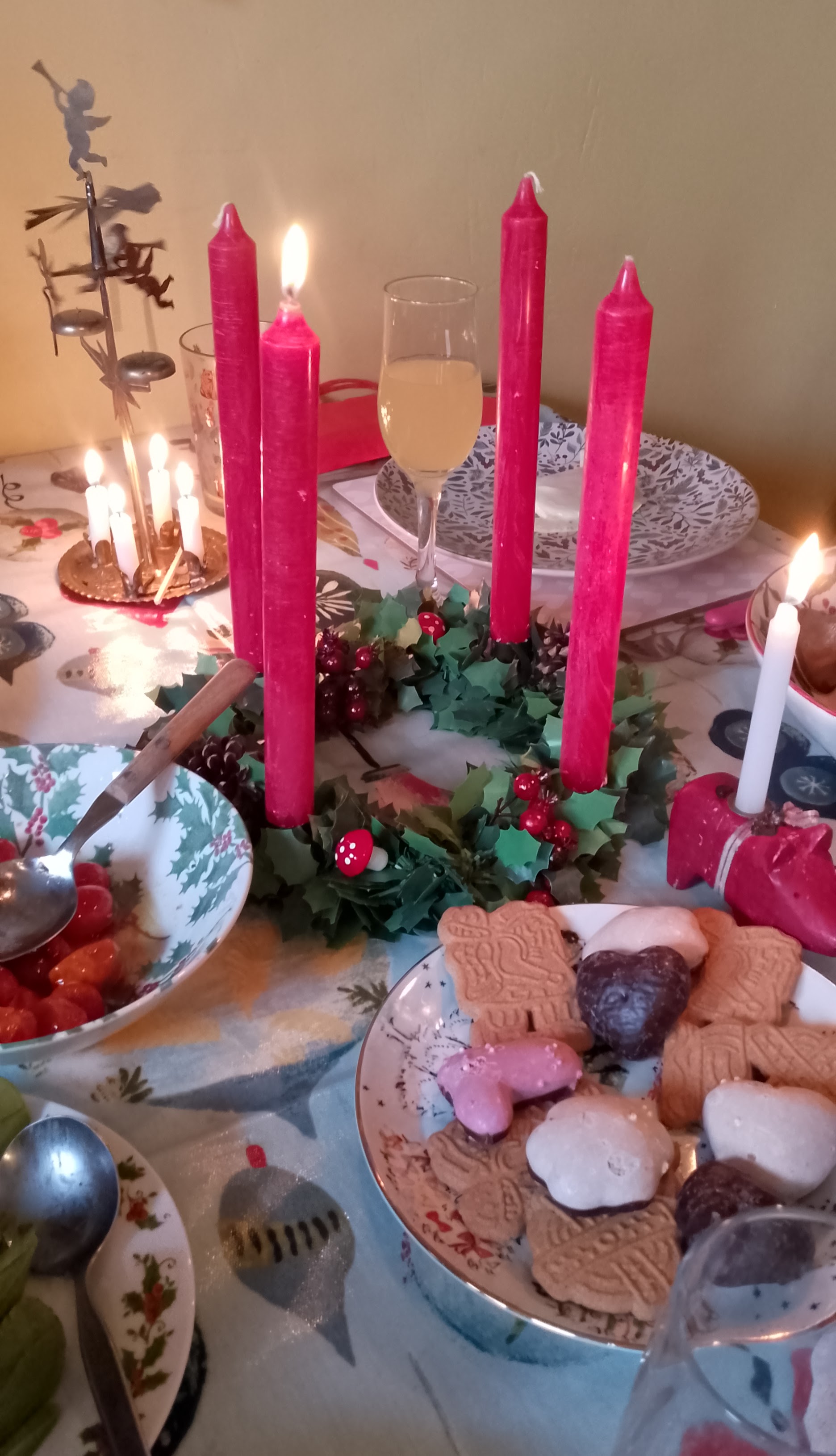 So, with the main elements all prepared, for me Christmas properly starts the following week on the first Sunday of Advent, when we celebrate with a special family breakfast. This is something which we adopted after my daughter experienced an Advent breakfast with her German exchange family seven years ago. It was one of the highlights of her stay in Berlin and she was very keen that we incorporate it into our own Christmas traditions. We have fully embraced it! It is a wonderful way to start the festive season and it’s something that we all look forward to. On the menu this year was a veggie fry up, home made waffles with a berry compote and, retaining a nod to its inception, a selection of Lidl’s finest German lebkuchen, all washed down with bucks fizz! We also exchange small presents (because that’s also what they did in Berlin!), and most importantly light the first candle in the Advent wreath.