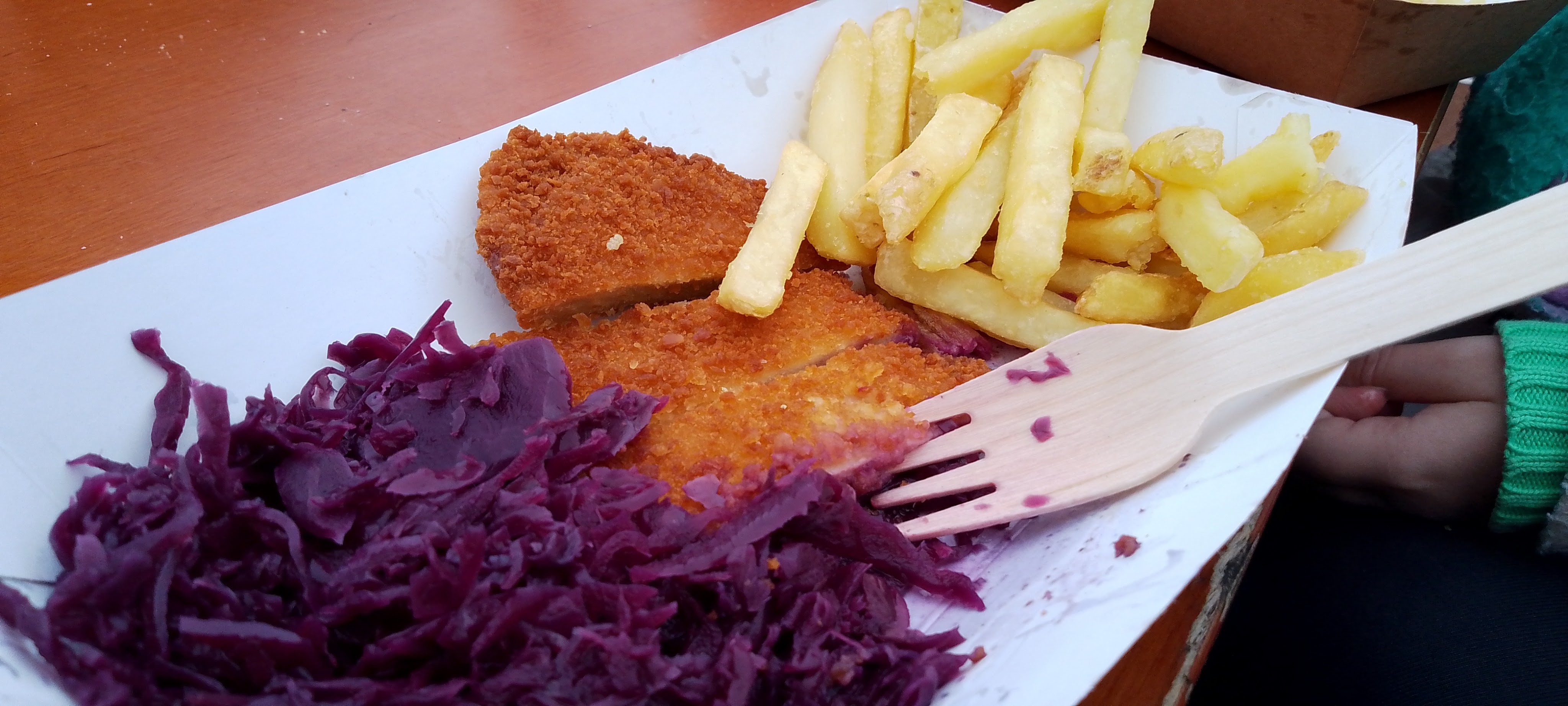Their Christmas market is held in the grounds of the castle, with a good mix of food and craft stalls, mostly from local makers and producers. There is also a Bavarian food village with a variety of tastes represented, but we always look forward to having our annual vegetarian schnitzel plate.