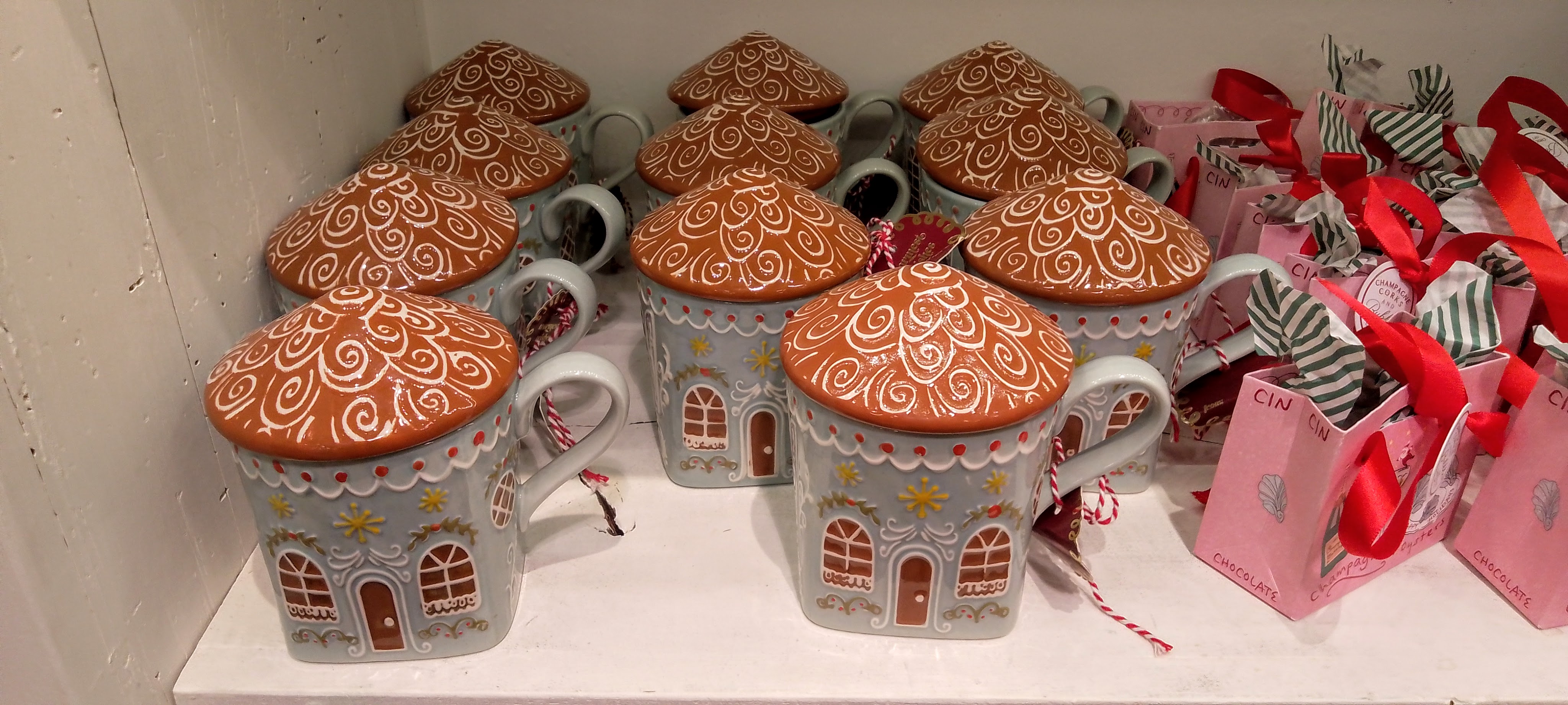 As we left I spotted an Anthropologie shop almost opposite and so had to go in. Always dangerous because they always have so many lovely things, I spotted these cute gingerbread house mugs and couldn’t resist. We had only just come out of a gingerbread exhibition. It would make a perfect souvenir of our day. It seemed like fate!
