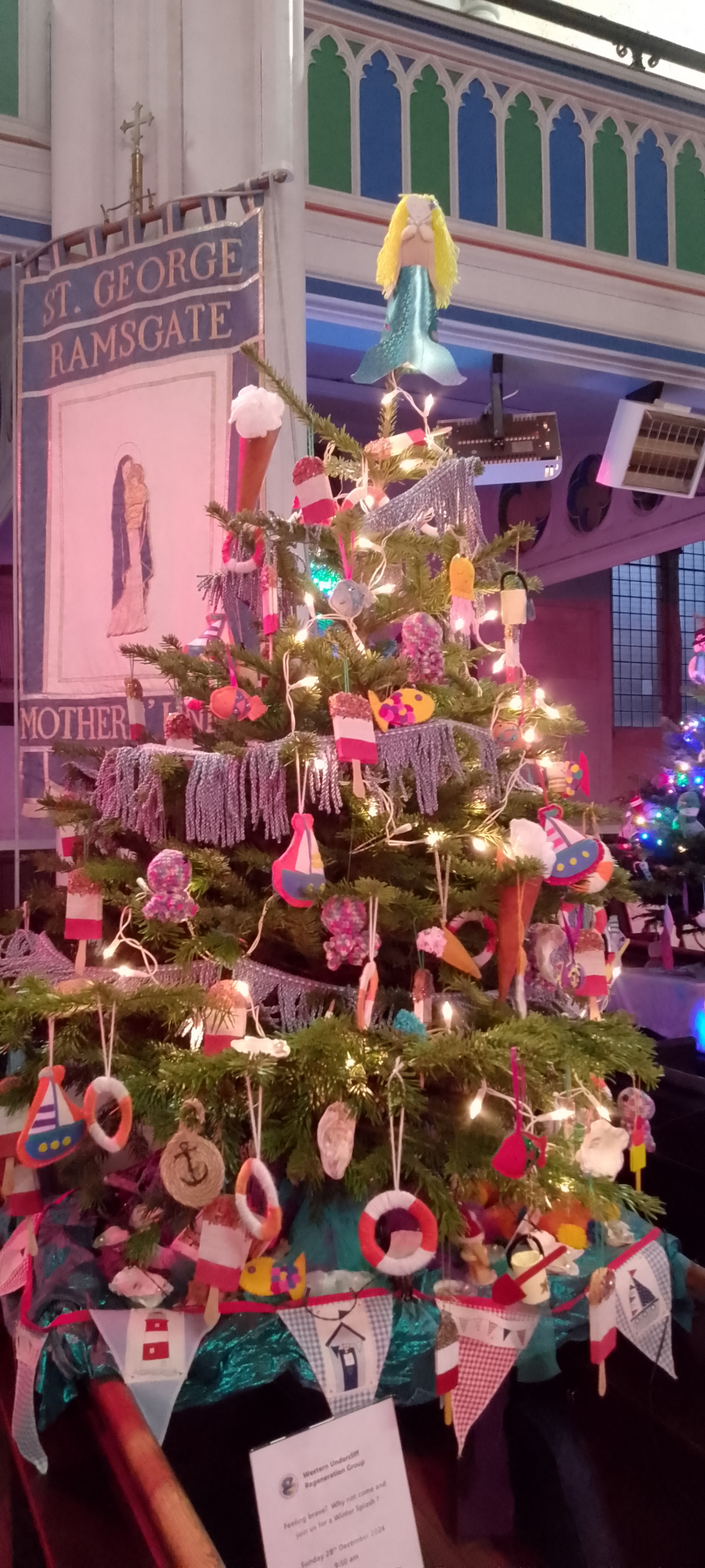 For example, the church cleaners had decorated their tree with baubles created from shaped sponges and crackers made out of dusters, which made it a lot more interesting than just looking at multiple trees with baubles and tinsel, and we spent a long time examining them all. At the end you could vote for your favourite tree, and mine was one that was decorated with a seaside theme, including ice lollies, boats and fish, finished off with a mermaid tree topper.