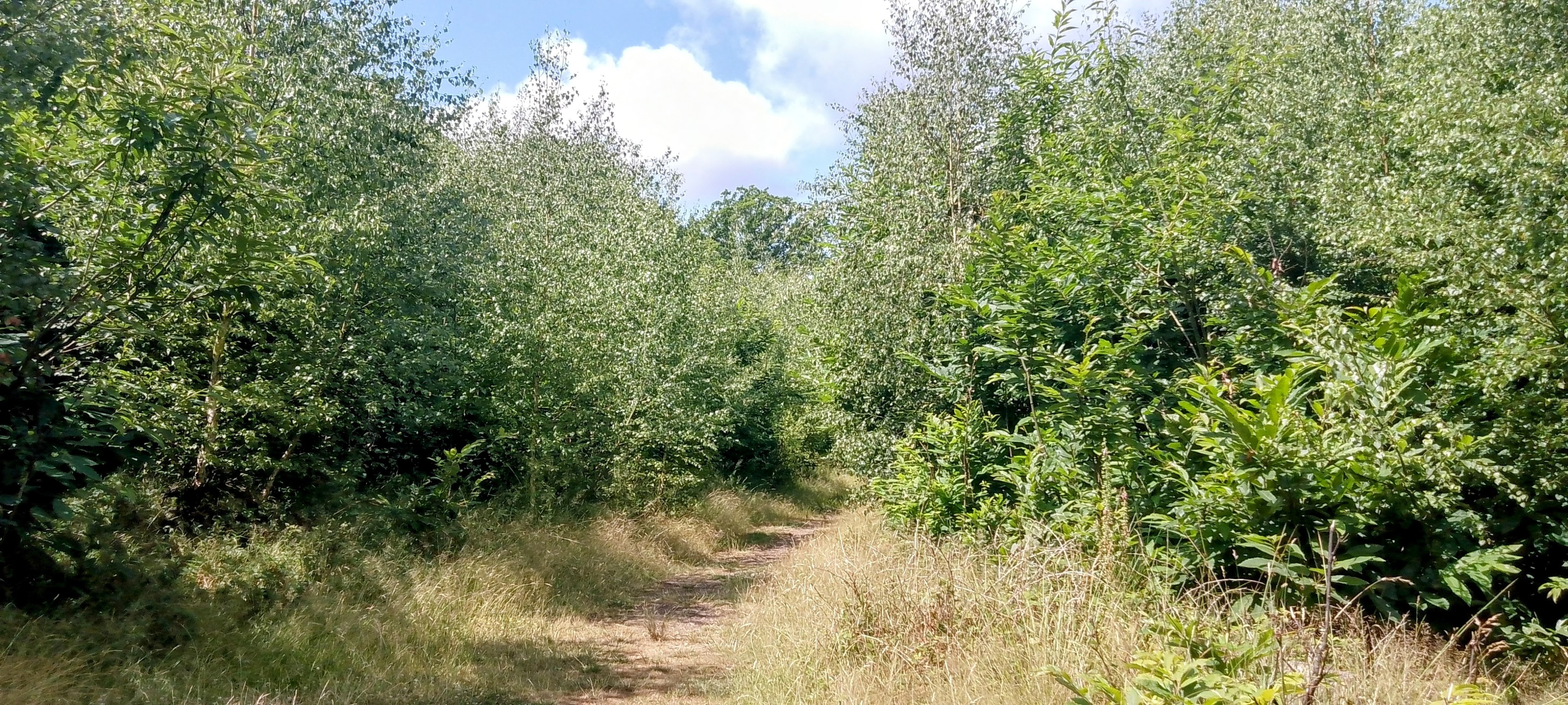 At the end of the lane, the North Downs Way slopes down and we passed by apple and pear orchards before reaching Bigbury Camp – site of an Iron Age hill fort and site of a battle between locals and the legions of Julius Caesar) at Howfield Wood. There are wild goats who graze here (courtesy of the Kent Wildlife Trust), but the trees which were coppiced a few years ago are growing rapidly and so they are difficult to spot at the moment as they are often hidden by the thick undergrowth.