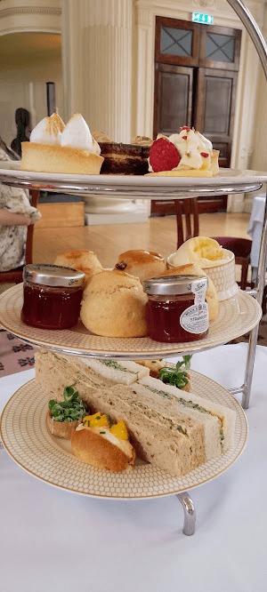 And I have to say that it was such an amazing experience and absolutely worth the money, and we both agreed that we would definitely go back again in the future. The service was superb and we were made to feel very special. At the moment, they are serving a Jane Austen themed afternoon tea, in celebration of 250 years since the author was born, and our waiter explained that the food on the menu had been researched in order to be authentic. By having the vegetarian option, the authenticity was slightly stretched as I’m not sure that either labneh or hummus would have featured on the Austen tea table (although the cucumber, mint and labneh and the hummus and coriander sandwiches were very tasty and a welcome change to the usual cheddar and chutney), but the parmesan and pea croustade with pea shoots, and the egg salad bridge roll, were no doubt more in keeping.