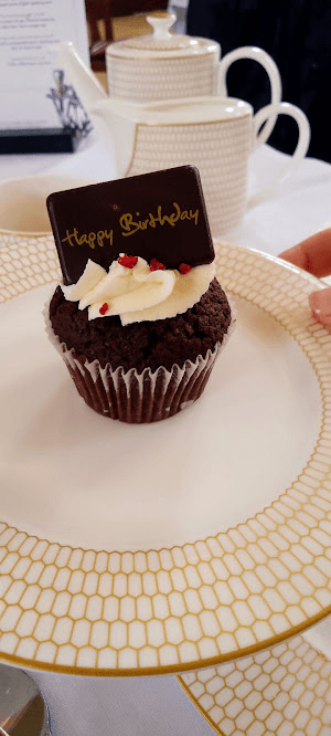 We were entertained throughout by the Pump Room trio which really elevated the experience. They played a selection of classical music from the Regency period, except for the moment when they struck up a rendition of Happy Birthday, and a waiter appeared bearing a special cup cake for my daughter, and everybody clapped and cheered. I would have hated it as I am a shrinking violet and can’t think of anything worse than being the centre of attention , but she was over the moon. It was such a lovely touch and was quite literally the icing on the cake!
