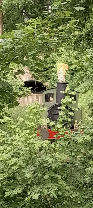 Towards the end of the walk, the path went through a wooded nature reserve and the instructions told us to look out for the disused railway tunnel that used to serve the old branch line. In fact we spotted the information panel before we noticed the boarded up tunnel entrance itself, and got quite a surprise when we turned and saw a life sized model engine, half hidden in the undergrowth – although what was even more startling, was the incredibly creepy engine driver looking out of the window of the cab. It made quite an impression!