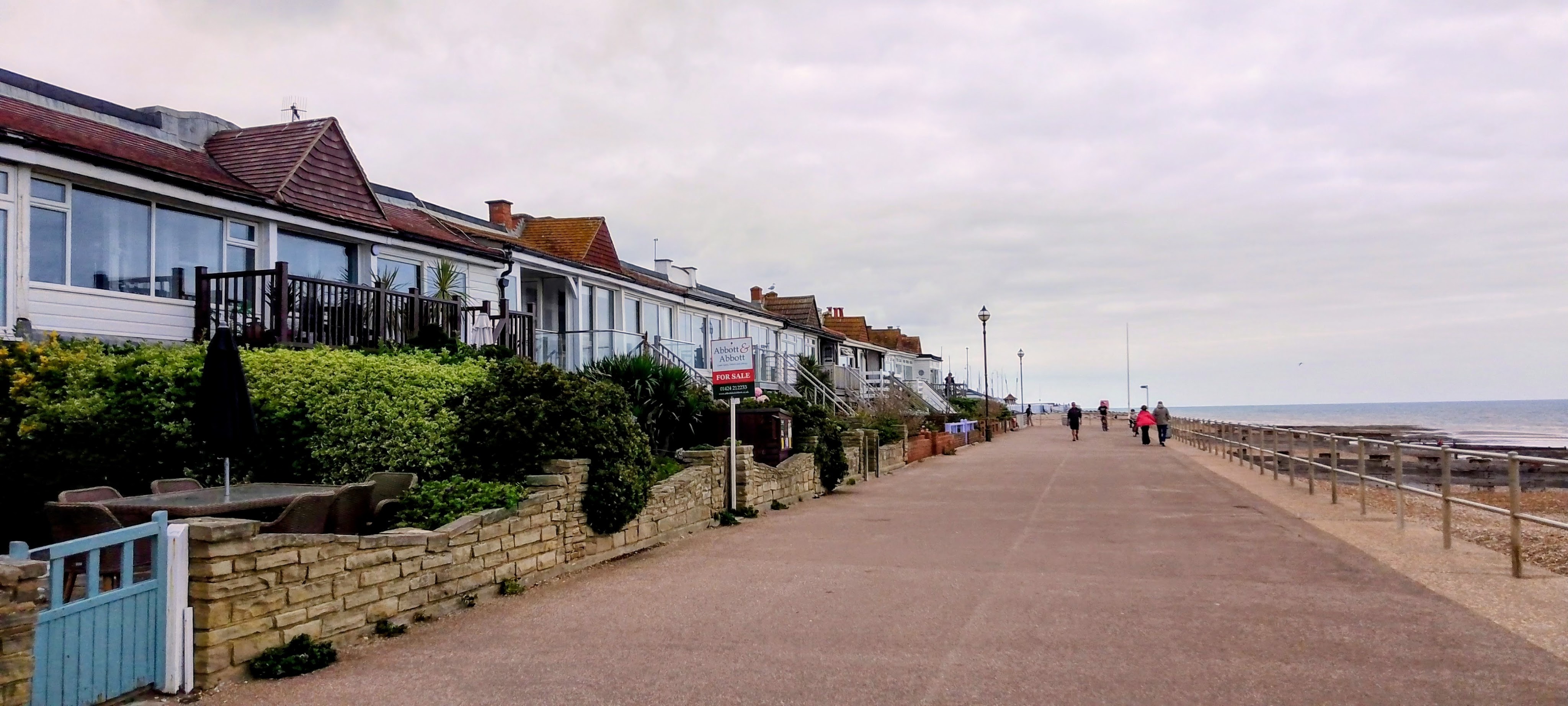 The plan was almost two years in the making, but on a disappointingly overcast day (the forecast had been for sunshine!), we finally headed to Bexhill-on-Sea, with the intention of walking back to Hastings. It’s a bit of a lengthy outward journey because it involves a change of trains at Ashford International with a 50 minute wait for the connection, but we passed the time reading, and rather than spending money in Starbucks, decided to wait for a coffee stop until we reached our destination.