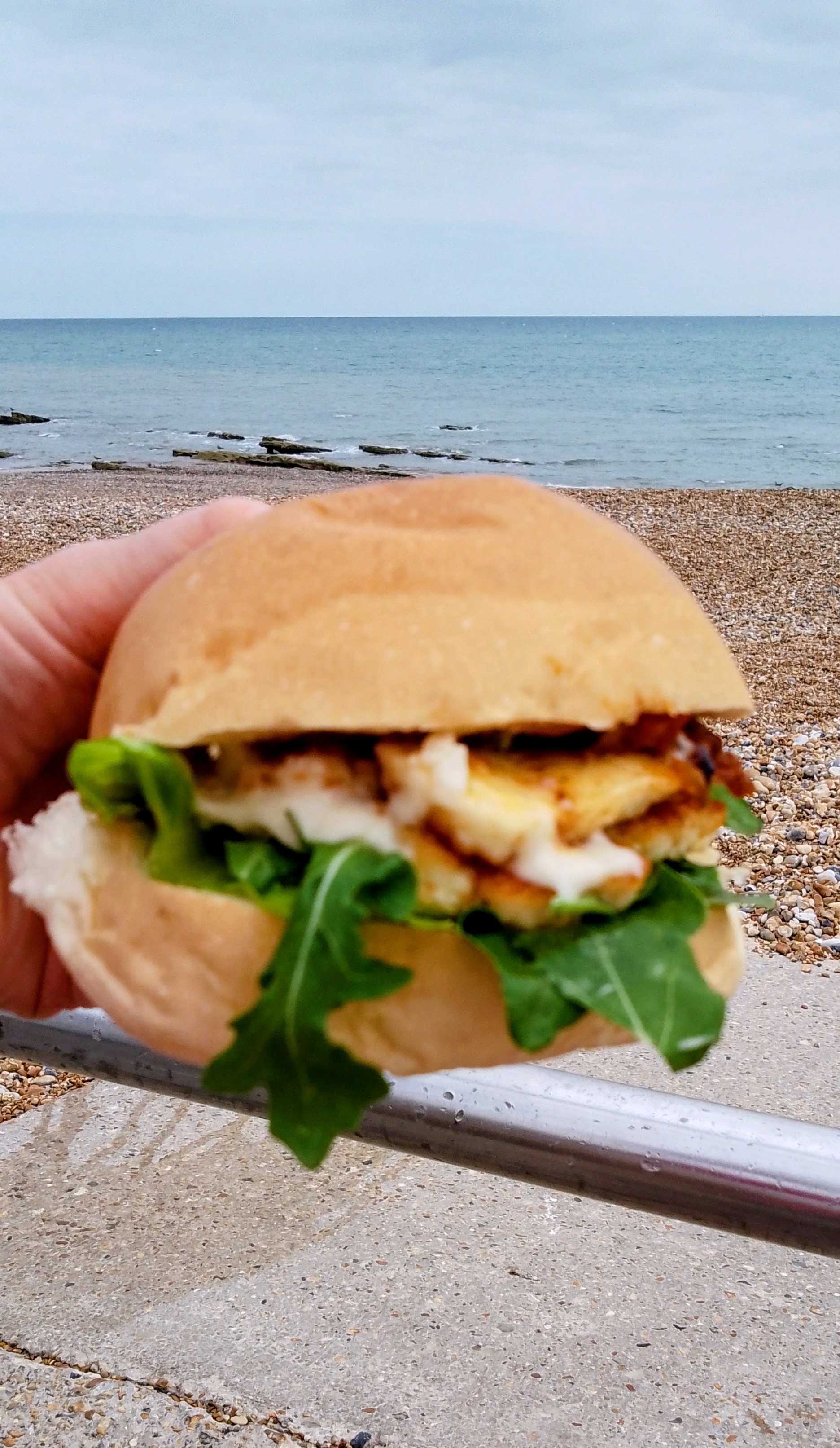 As usual, I had been on trip advisor, and drawn up a short list of some likely looking independent cafes, and so we headed straight to the seafront and towards the De La Warr Pavilion – only to discover that our chosen stop (Hughie’s Beach Cafe) was boarded up with a notice announcing that it was closed due to unforeseen circumstances. It was already 12 o’clock, and we didn’t want to head back into town, so we settled for the cafe next door, which is just below where this photo was taken.