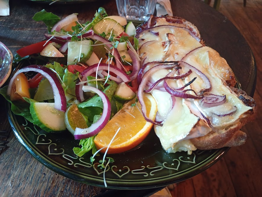 On our last visit the kitchen had only just opened for the day, and although we didn’t have time to wait until the hot options (stew, daal etc) were ready (my afternoon nap was calling), we were able to order a tasty brie and cranberry ‘pizza’ with a very generous salad.