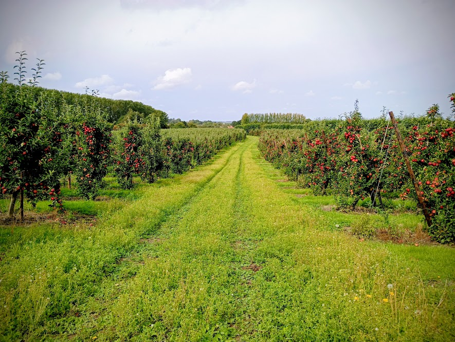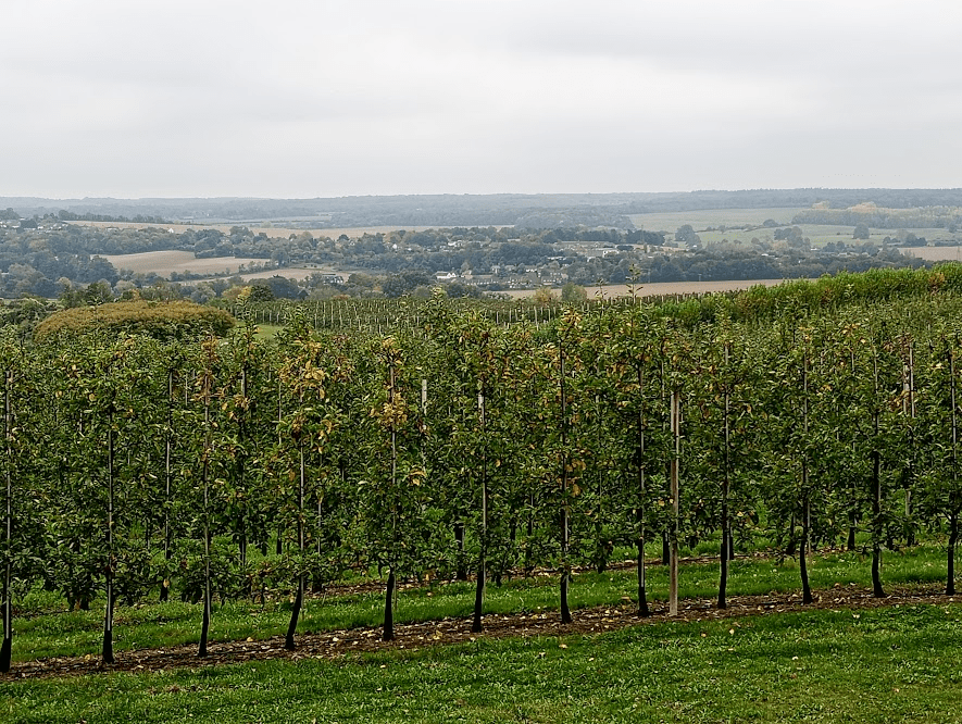 Then there are then great swathes of orchards with fabulous and far reaching views across the Kent Downs., with a handily placed bench where you can sit for a moment to take it all in.