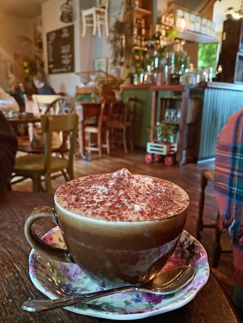 The decor inside is quirky and there is a sweet little garden (also with chicken) which is open in the summer, and there is also a lovely little general store attached.