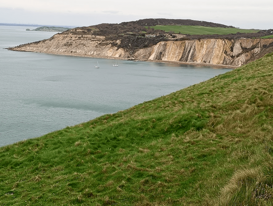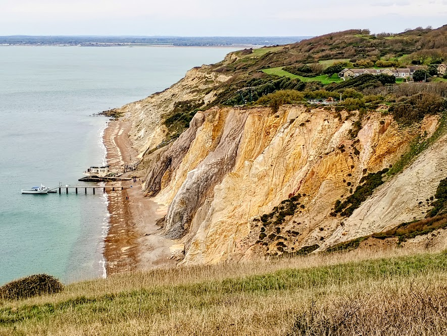 To be honest, it wasn’t too much further, and the colours of those cliffs made it worth it. Apparently there are 21 different shades, but my phone camera doesn’t really do them justice. There’s a chair lift at the top of the cliffs that carries people down to the beach, from where pleasure boats were plying their trade and sailing around the Needles themselves for the ultimate photo.