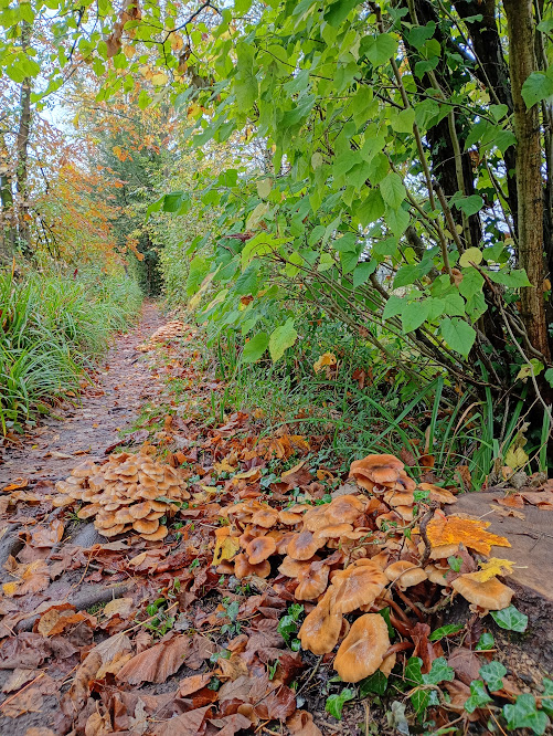 It was petty easy walking, mostly along tarmac or gravelled paths, although we did encounter one very boggy grassy section that we had to carefully pick our way through. The leaves were looking beautiful