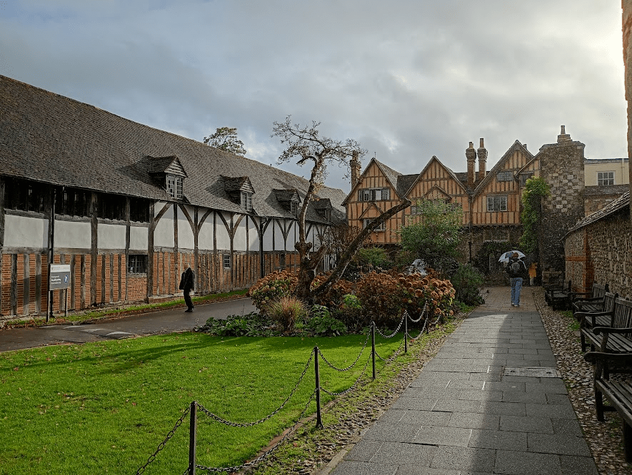 During the summer, the Hospital of St Cross has a cafe in the same medieval hall where up to 100 poor men used to be fed daily, which would also have given us some very welcome shelter, but sadly that had also just closed for the season.
