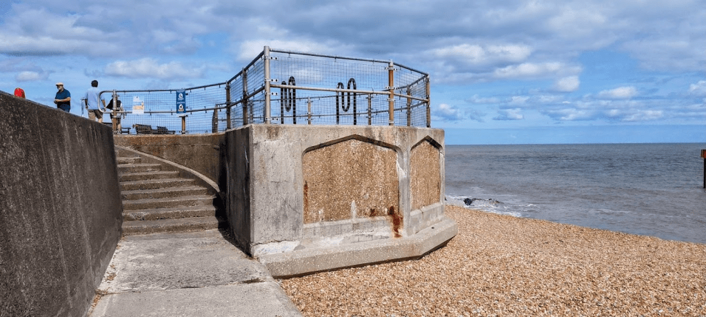 Sandown Castle was the third of the three defensive castles built by Henry VIII (Walmer and Deal Castles were both passed on the previous leg of the walk), but sadly succumbed to erosion, and what remained was built into these sea defences.