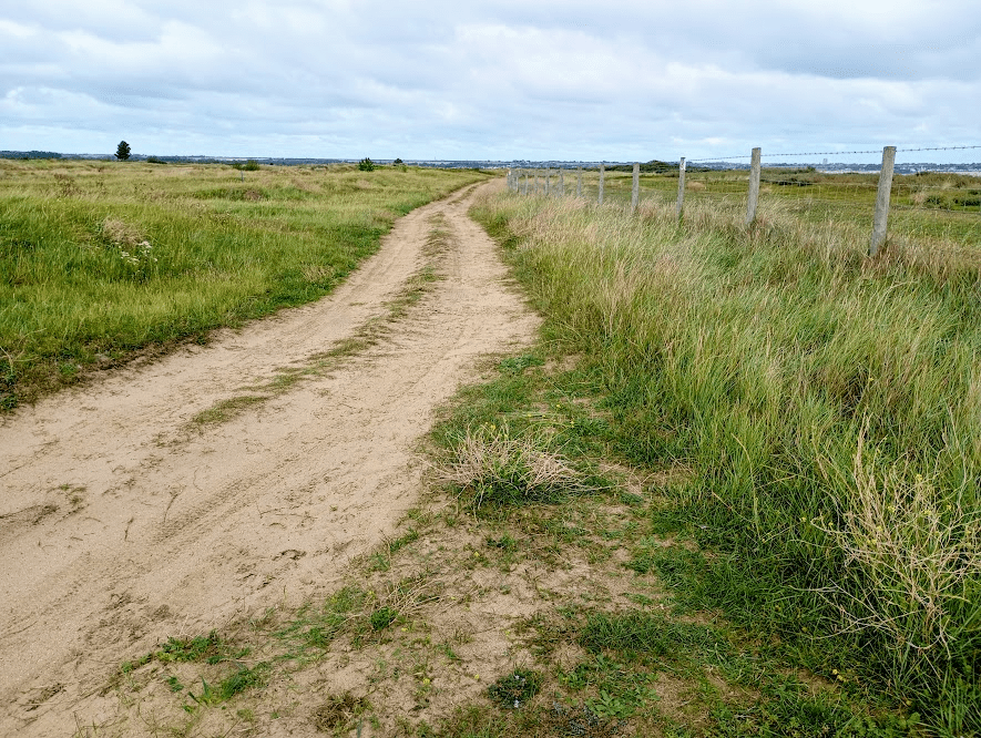 This time I was walking solo and, having re-traced my steps back to the sea, turned left and headed towards the third golf club of the section – Princes Golf Club. I wasn’t really sure whether I was supposed to be walking along the private road that runs along here, but I decided that it would be nicer to walk along the edge of the beach, which had a wide grassy stretch running along the back, although I wondered whether I had made the right decision when a fence suddenly ran between me and said road. Was I going to find myself unable to access the coastal path when it turned inland and have to back track? (Spoiler alert, I didn’t!)