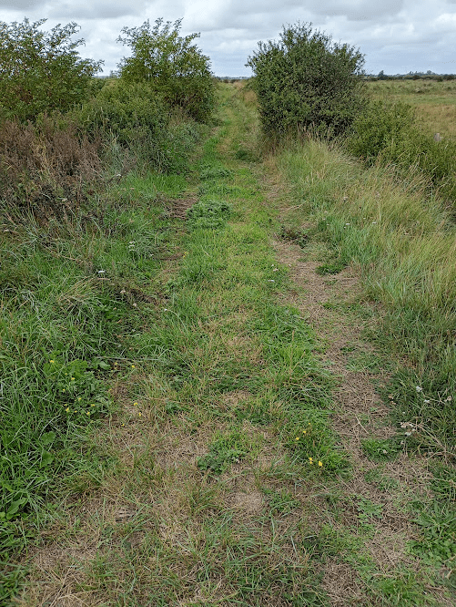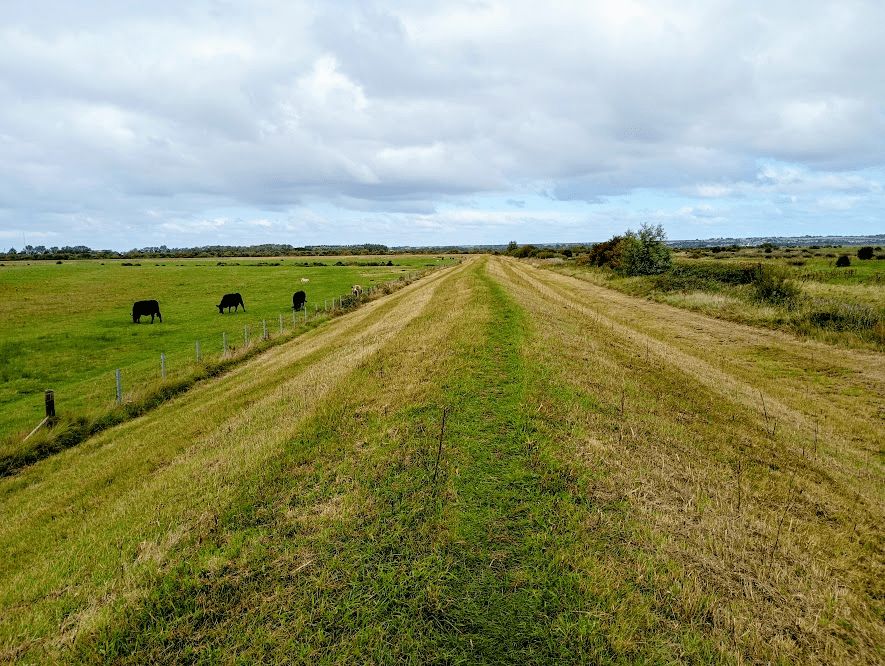 It was a relief to emerge out into the open, and although the walk instructions said to follow the path along the bottom of the embankment that greeted me, I decided to go rogue and climb up and walk along the top of it (and it was higher than it looks in the photo). Once I had established that the cows I had spotted were safely behind a fence, I felt a little better. It was still very isolated, but at least I could see clearly in all directions!