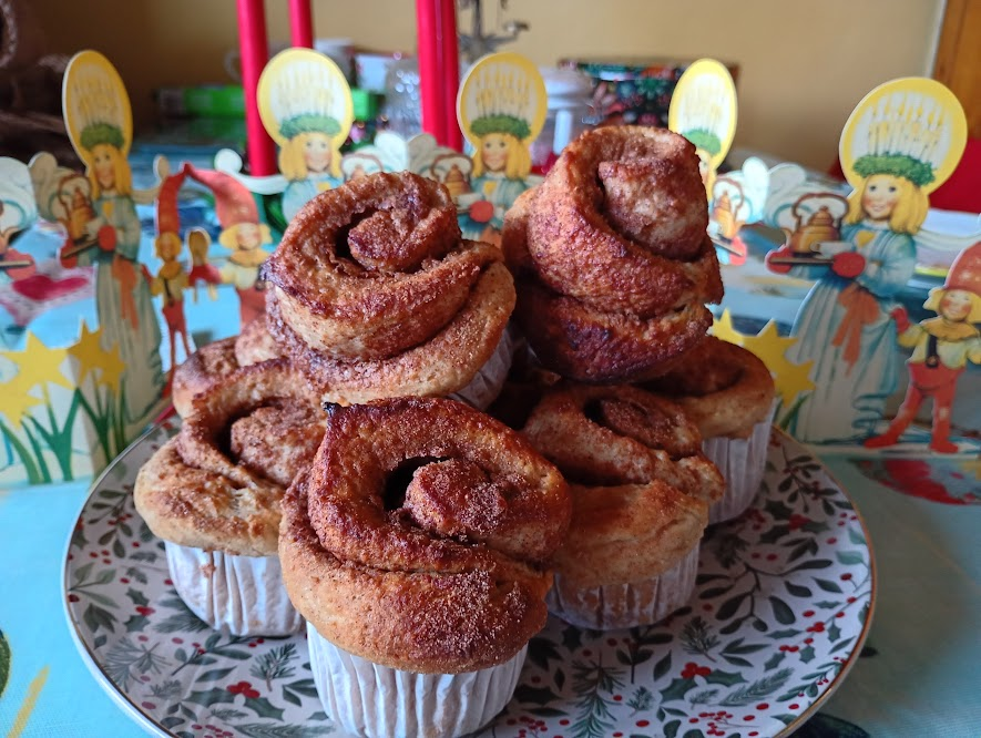 I had a go at making Chelsea buns (which didn’t have much of a rise because I think my milk was too hot and killed off the yeast although they tasted quite nice), and then finished the year with cinnamon buns. I made them for St Lucia’s Day on 13th December, and although Saffron buns are apparently more traditional, saffron is also expensive and, after my Chelsea bun failure, I didn’t want to risk the outlay. The buns I made are probably not that authentic, but, they turned out significantly better than I’d hoped and they tasted delicious.