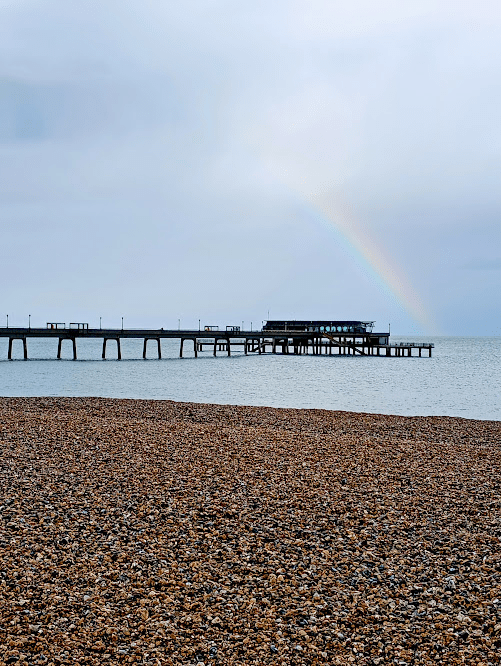 We timed it well as it started to rain just as we finished our drinks and started walking back to Deal, but we were rewarded with a rainbow which appeared at the end of the pier.