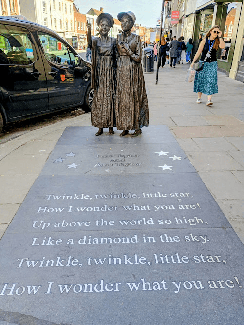 Still, in the course of our dithering about what we were going to do instead, we came across a statue of Jane Taylor (and her sister Ann), who lived in Colchester and who famously (or maybe not so famously as I had never heard of her!) wrote Twinkle Twinkle Little Star (Jane is apparently the one on the left who is pointing up at a star), so that was an interesting thing to come out of it.