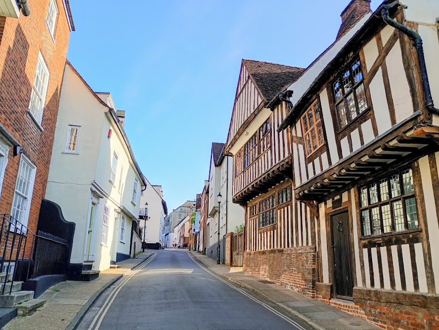 Back in Colchester, we made a short detour to explore the Dutch Quarter, home to Flemish Protestant refugees, fleeing from religious persecution in the 16th century. It was worth a look, with a range of architectural styles, from timber framed to quaint and colourful cottages, but we were all flagging by this point.